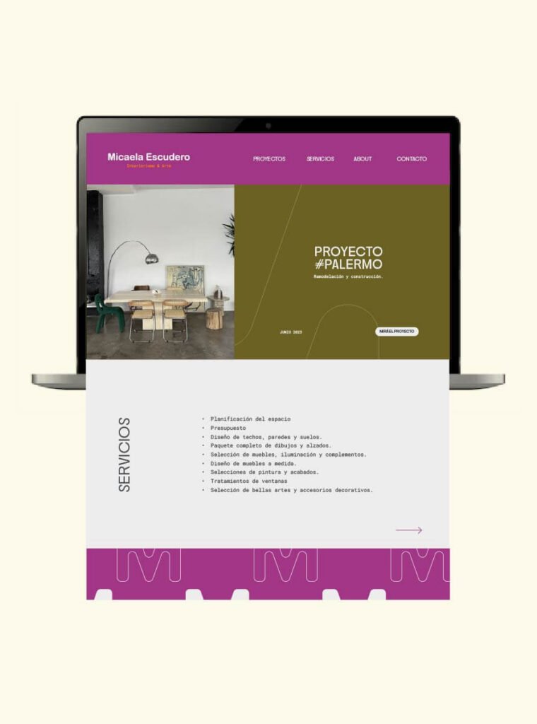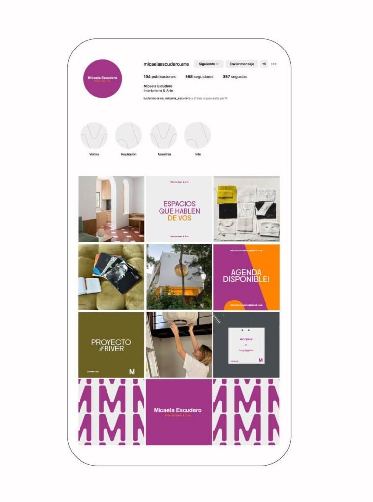 Branding a Mica Escudero. Mica ofrece el servicio de interiorismo y arte. En este branding la idea fue reflejar su visión, su proceso creativo, su manera de pensar y visualizar espacios.